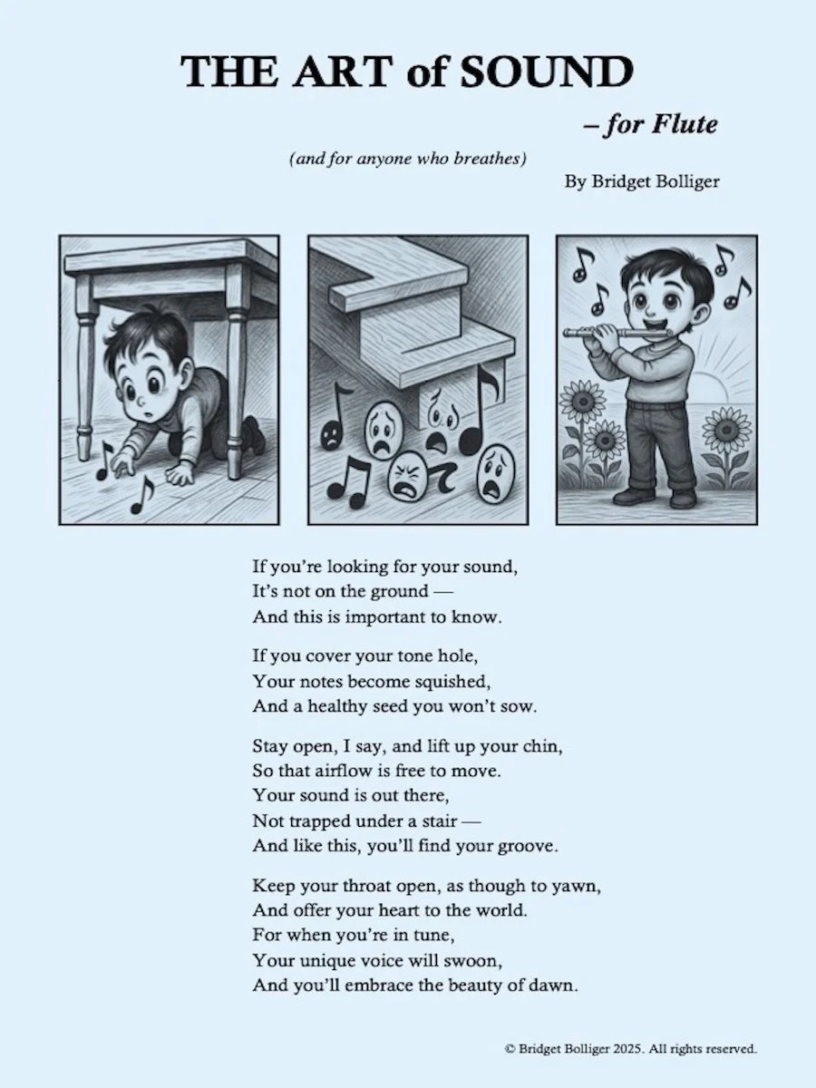 Joyful, practical teaching prompts covering essential elements of flute playing and musical artistry — from breath and support to tone, articulation, musical flow, expression, originality, and more to come — for flautists and for anyone who breathes. Each card is a high-resolution PDF (A4 or A5) designed for studio use: print, display, and revisit in lessons and practice.